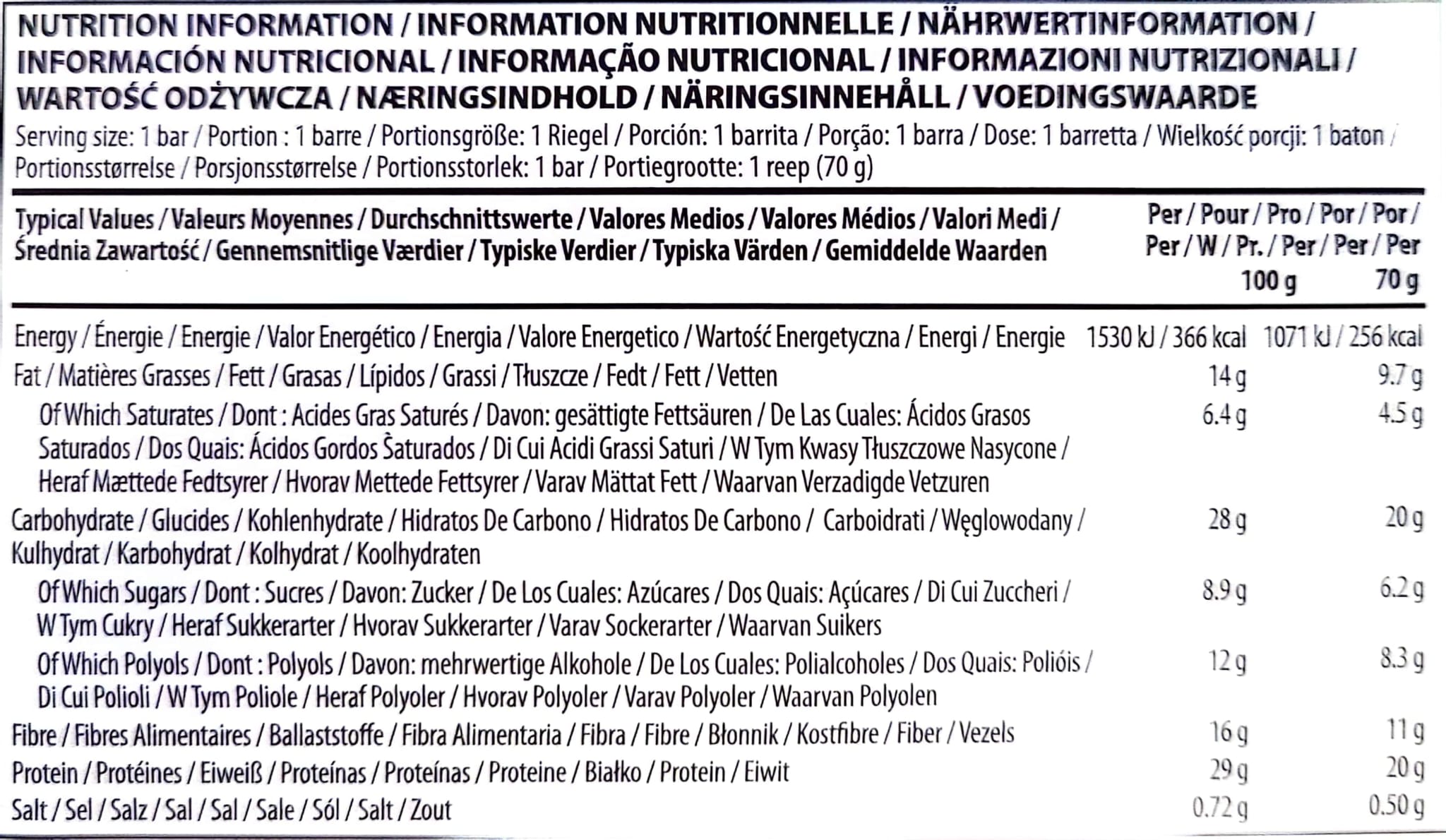 Batoanele proteice de ciocolata de la Optimum Nutrition sunt pline de fructe si nuci si contin 20 g de proteine care te vor ajuta sa construiesti si sa iti mentii masa musculara. Mai mult de atat, au un gust excelent, o textura crispy, sunt bogate in fibre si contin doar zaharuri naturale.